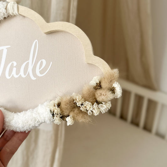 Nuage personnalisé prénom Écru - Fleurs séchées Bio