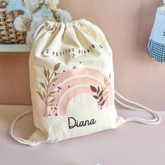 Sac À Dos Prénom Bébé – Crèche et Nounou – Rose Pastel et Beige Coton Bio