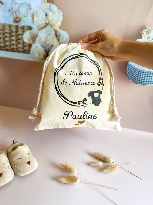 Pochon Ma Tenue De Naissance - Personnalisé Prénom Bébé – Coton Naturel