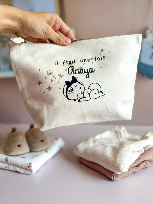 Trousse De Toilette Bébé Personnalisé – Prénom – Coton Naturel – Cadeau Naissance Fille