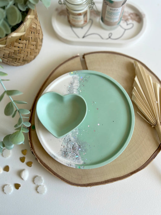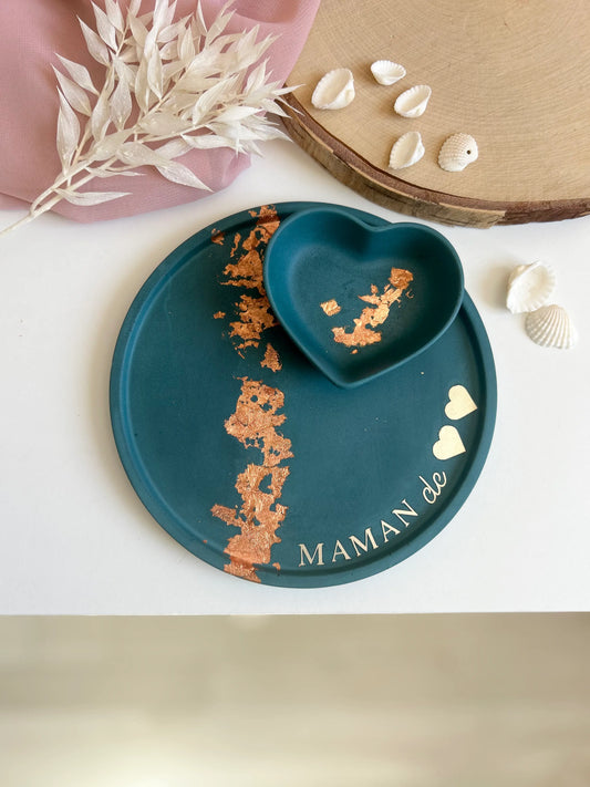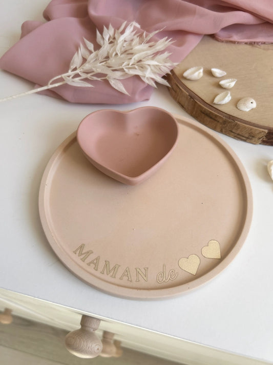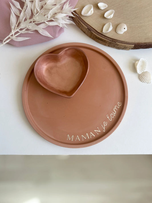 Plateau rond et coupelle coeur spécial maman - Terracotta